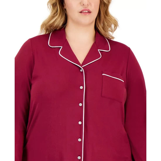 Alfani’s soft suede jersey pajamas set are a plus size pair designed with a notched-collar top and matching pajama pants.