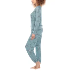 - Bottom: hits at mid thigh; piping trim; elastic waist