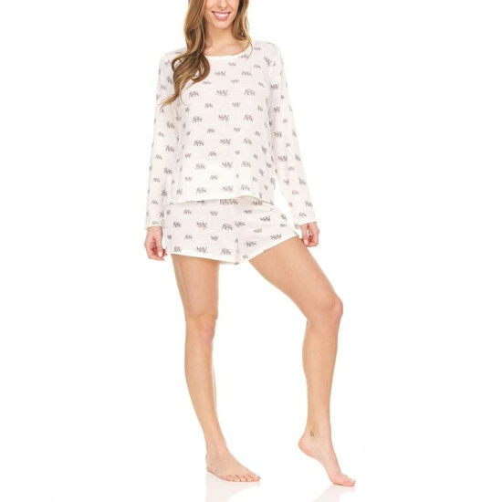 - The Bearpaw women’s pajama lounge shorts set comes in gray, Light pink, ivory and light green color