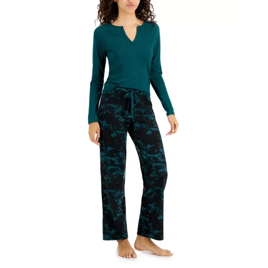 - Bottom: hits at ankle; elastic waistband; ribbed hem