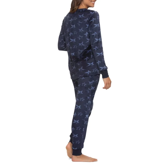 - Bottom: approx. inseam: 30″; hits at ankle; jersey fabric; drawstring at elastic waist