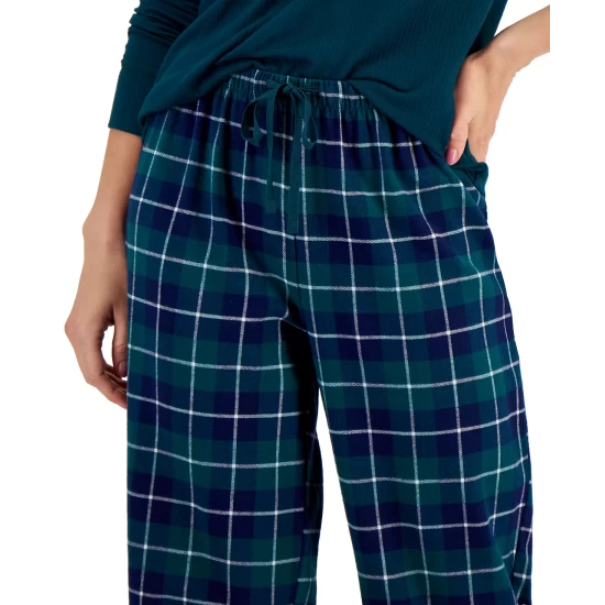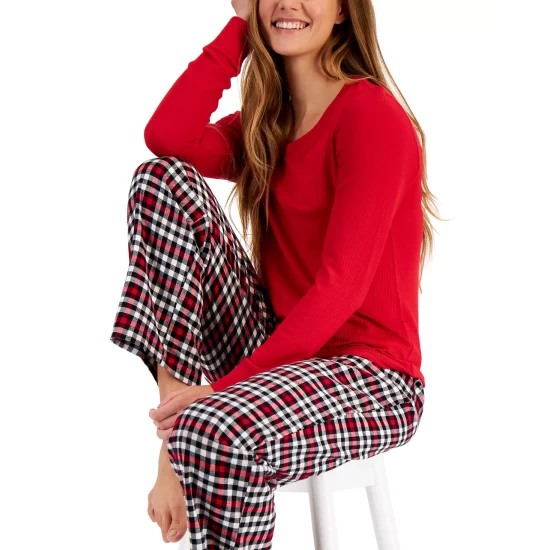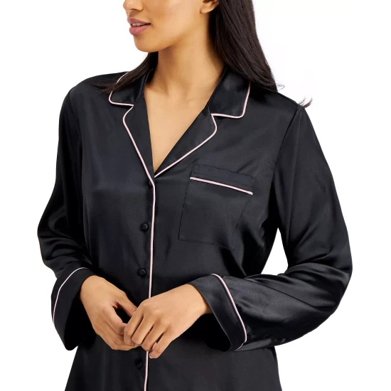 The leisurely ease of a classic style is uplifted by modern fabrications and polished piping trim in this pajama set from INC International Conceptsยฎ.