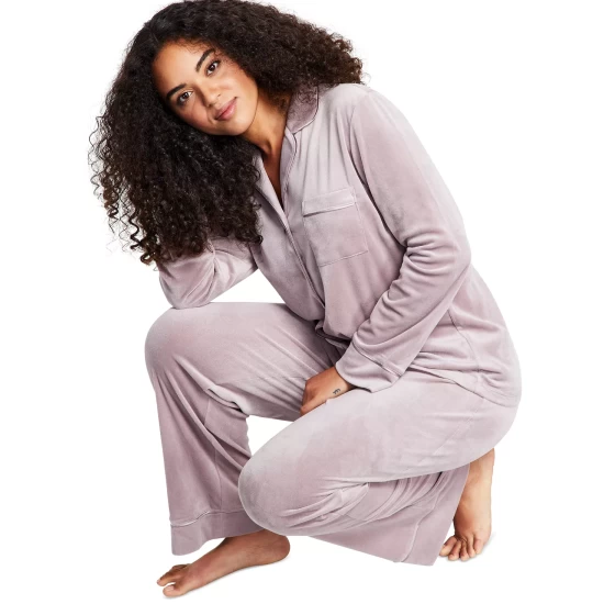 Cozy up to the luxurious super soft feel of this classic notch-collar velour pajama set by I.N.C. International Conceptsยฎ.