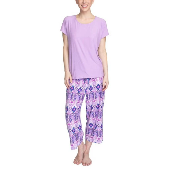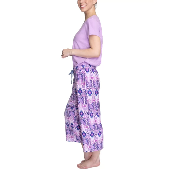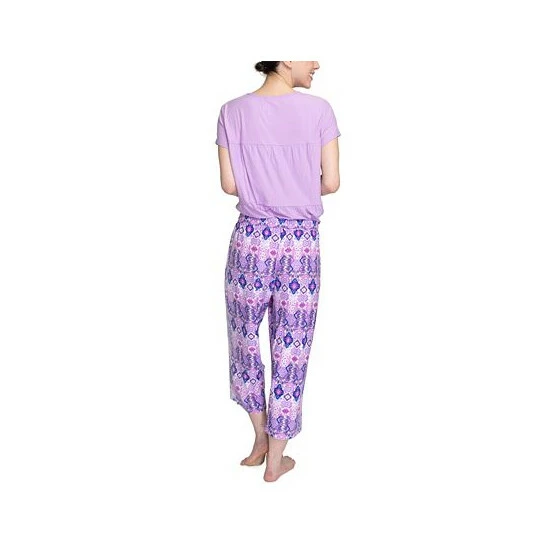 For a sleep ensemble that is as sweet as it is comfortable, this plus size short-sleeve top and capri pajama pants set by Muk Luks is a true winner.