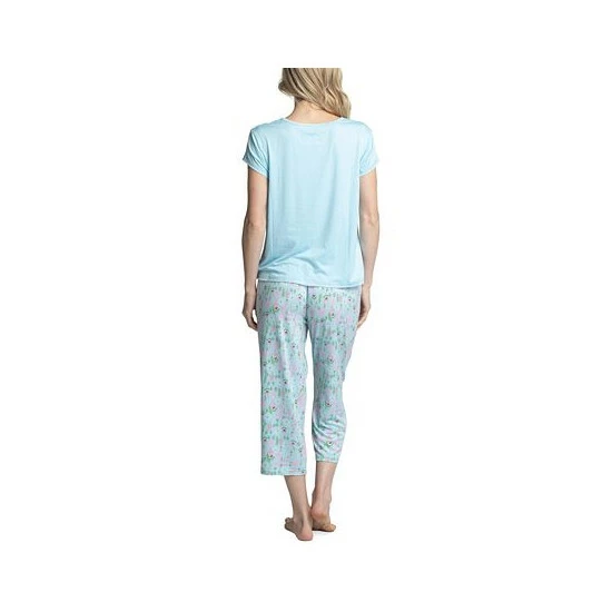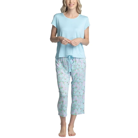 Sleep like a baby in Muk Luks super soft cloud-knit pajama set with cozy plus size capri pants and a short sleeve top.